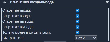 Настройка уведомлений данной категории позволяет отслеживать открытие и/или закрытие ввода/вывода монет на различных CEX-биржах.