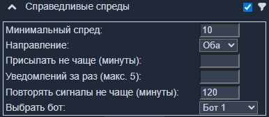 - Минимальный спред:: минимальный спред получаемых сигналов;